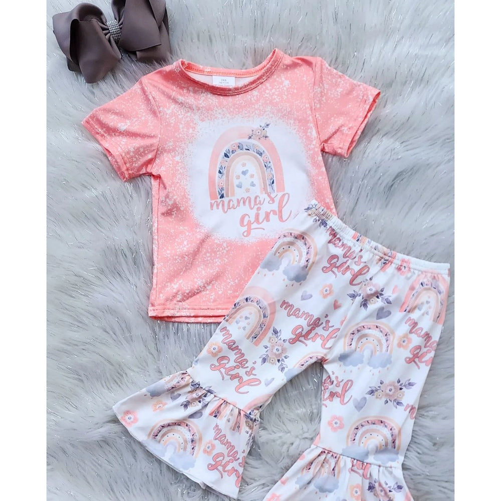 Wholesale Children's Rainbow Print Short Sleeve Bell Bottoms Two Piece Children's Clothing Set