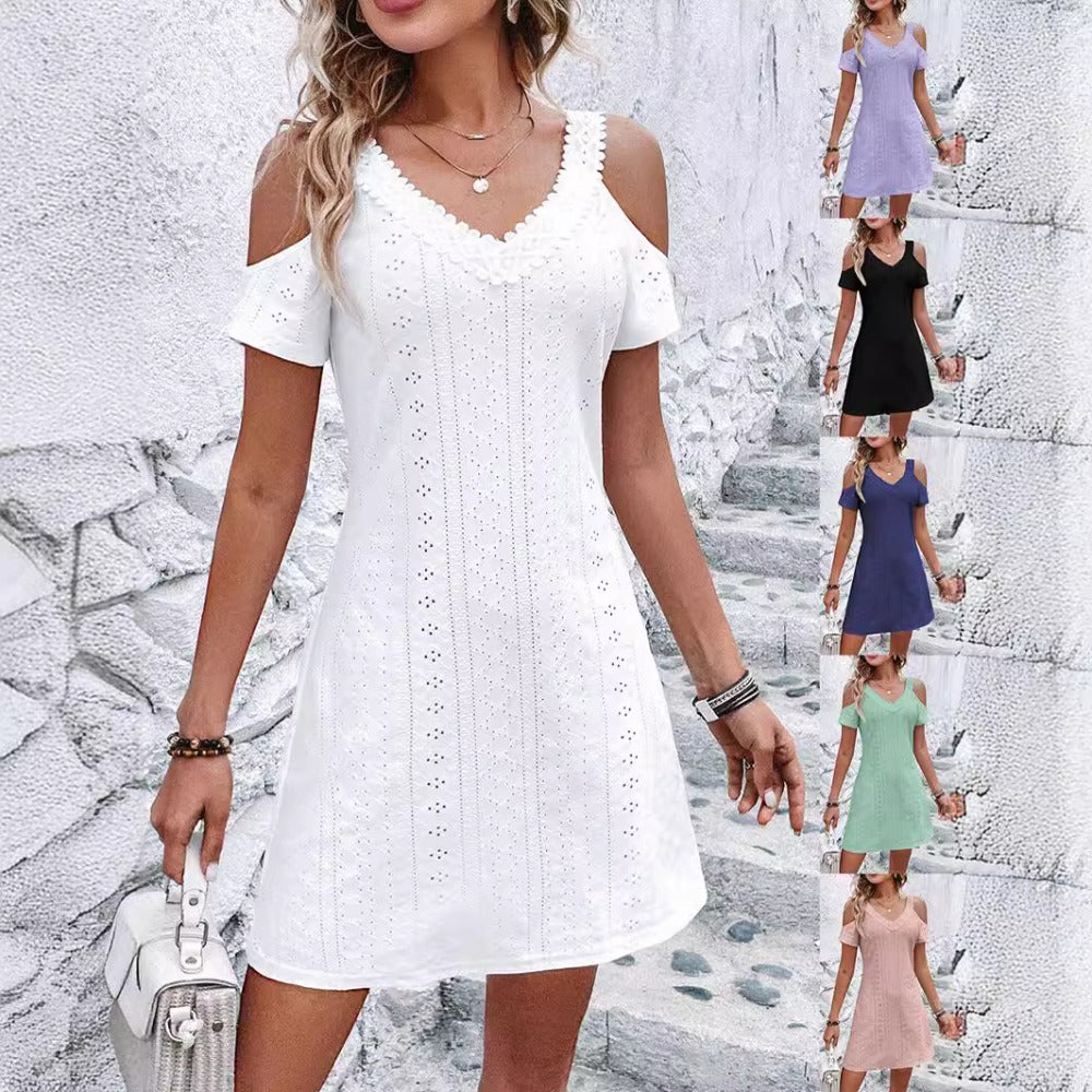Wholesale Off-the-shoulder Short-sleeved Elegant Slim Dress