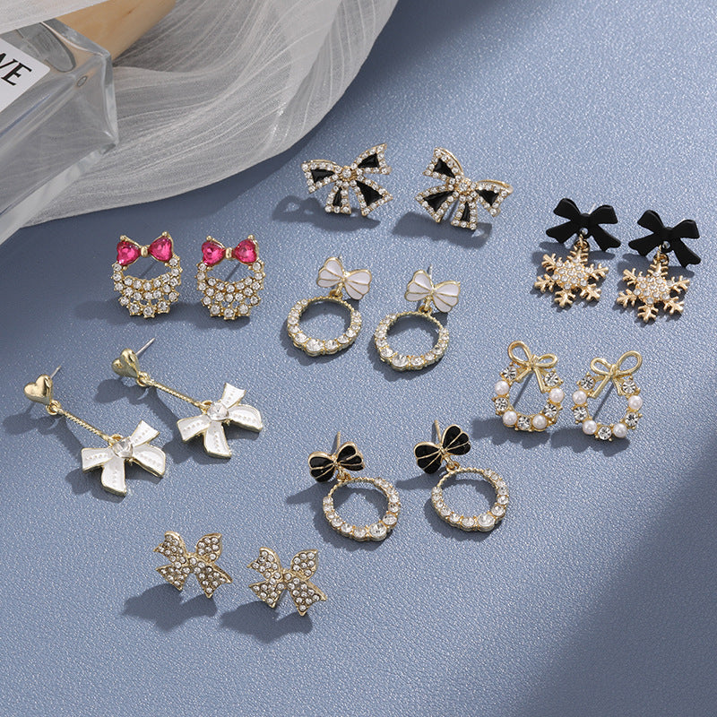 Wholesale Bow Oil Dripping Diamond Snowflake Earrings