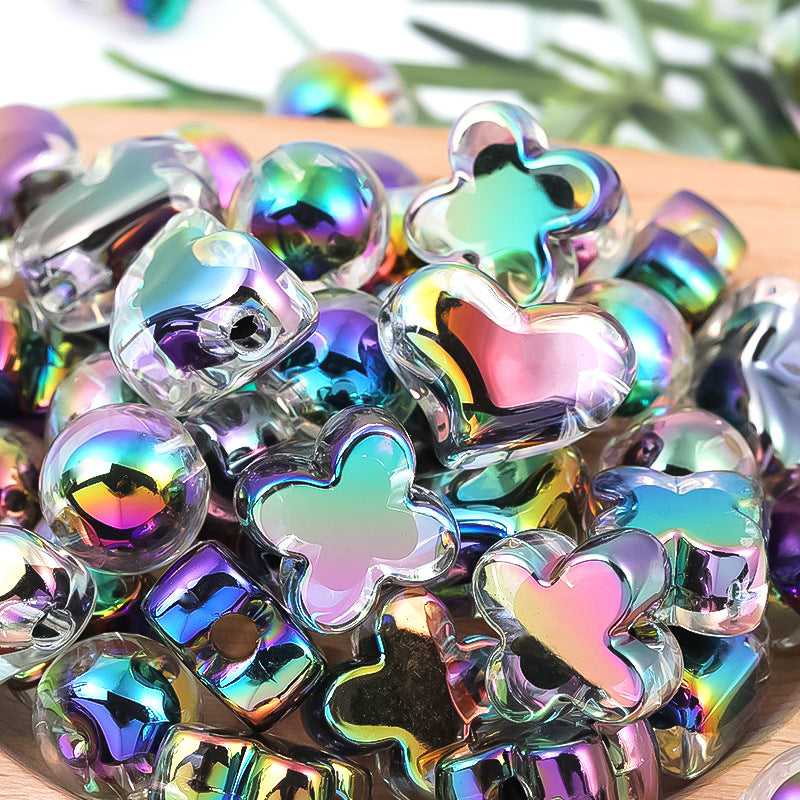 Al por mayor 30 piezas/paquete UV chapado UV Heart Heart Plastic Beads