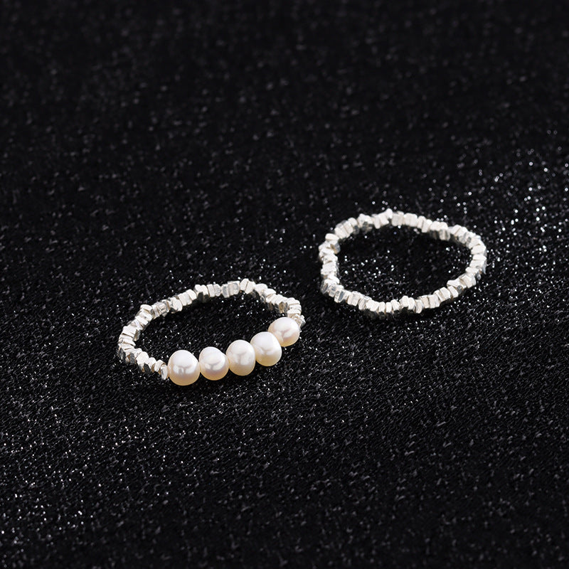 Anillo de perla plateada irregular roto y irregular al por mayor