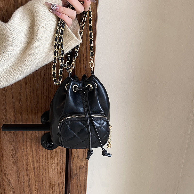Wholesale PU Diamond Patterned Embroidered Thread Bucket Bag