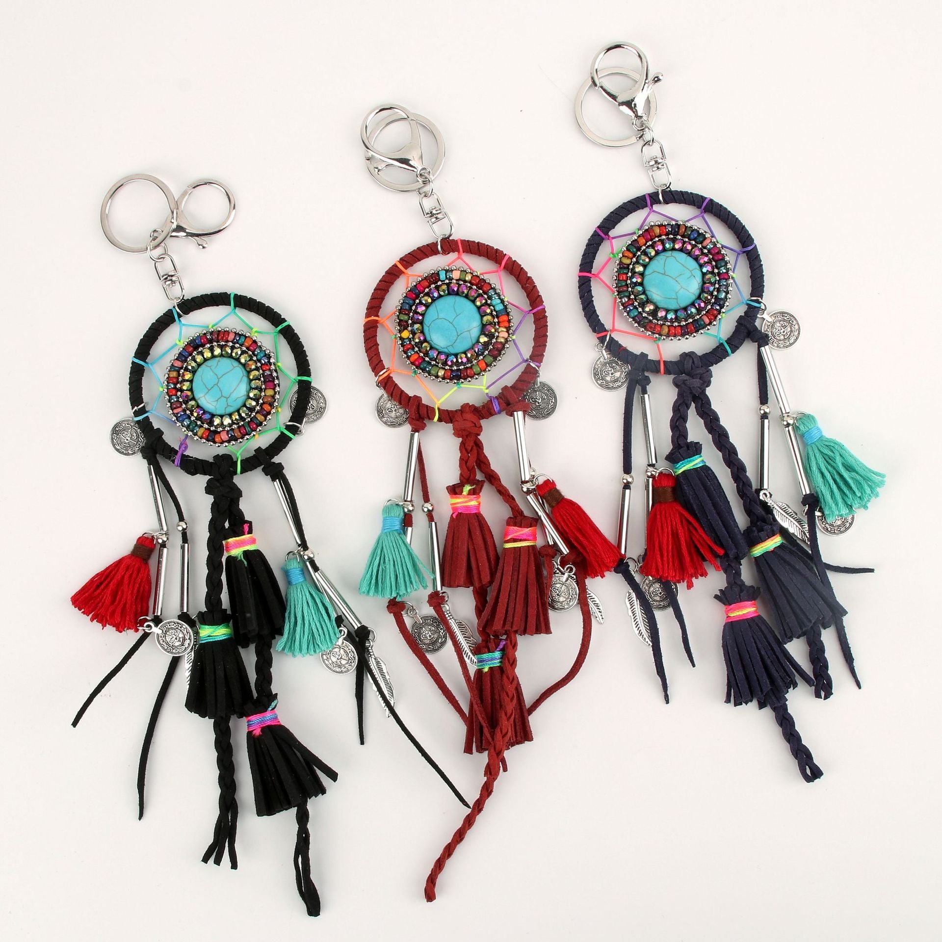 Venta al por mayor Color étnico Borla Hierba Llavero Lona