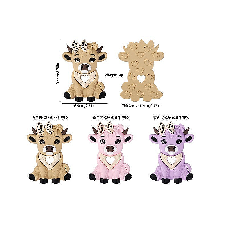 Wholesale 5pcs Creative Design Beautiful Bow Highland Cattle Teether