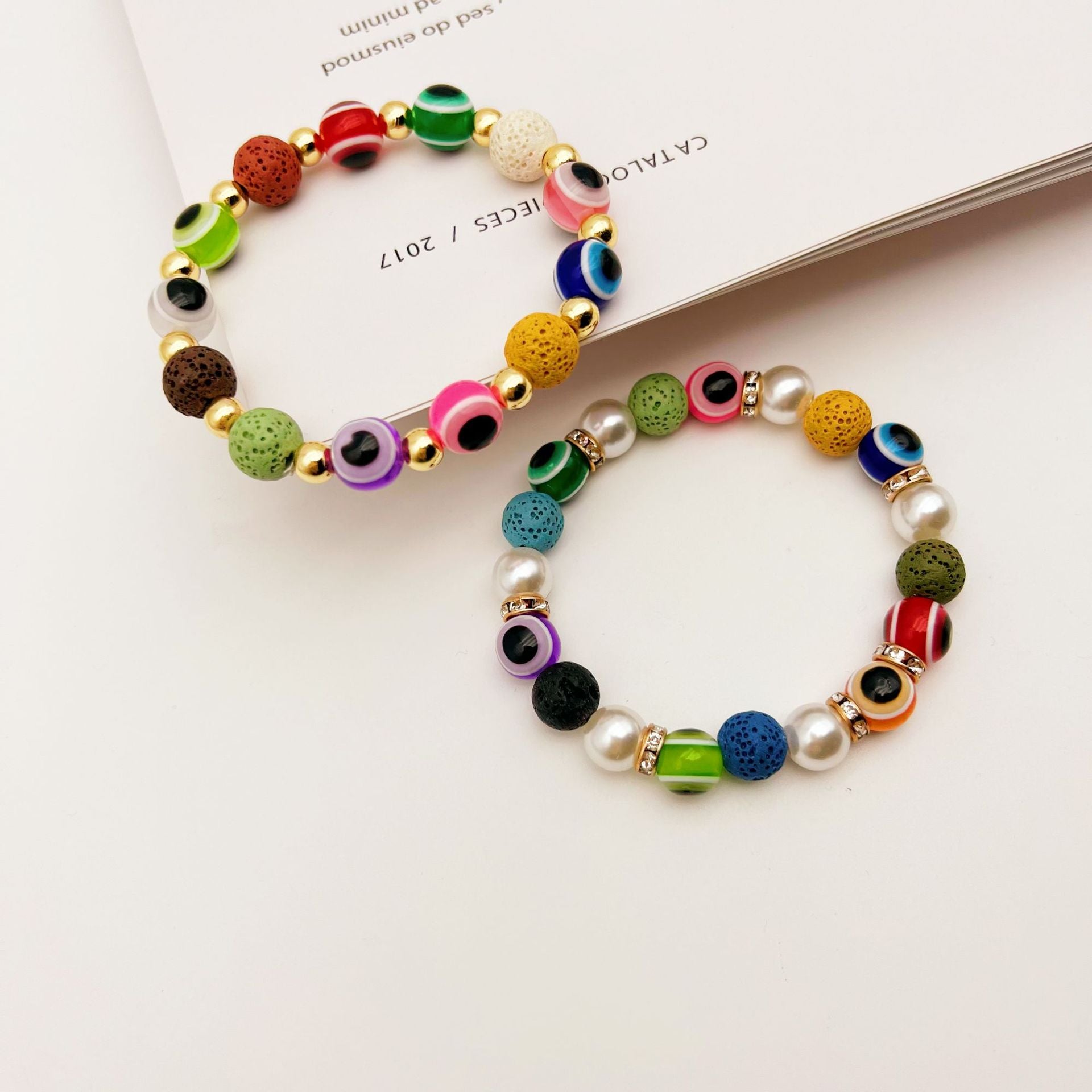 Venta al por mayor Pulseras De Piedra Volcánica De Colores De Ojo De Diablo