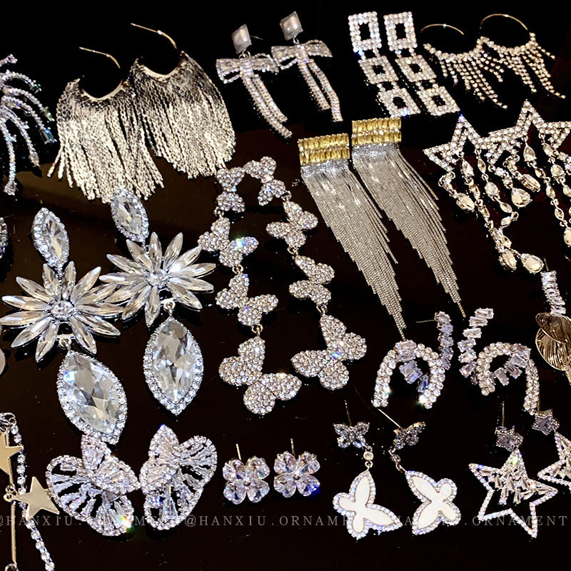 Wholesale Diamond Butterfly Flower Five Pointed Star Tassel Alloy Earrings