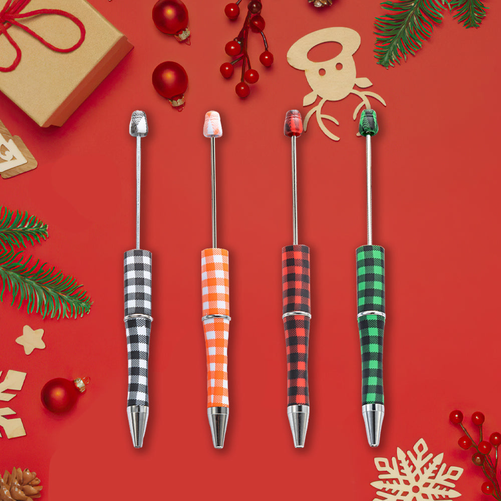 Wholesale Beadable Pens Christmas Plaid Pattern Plastic Pen DIY for Beaded