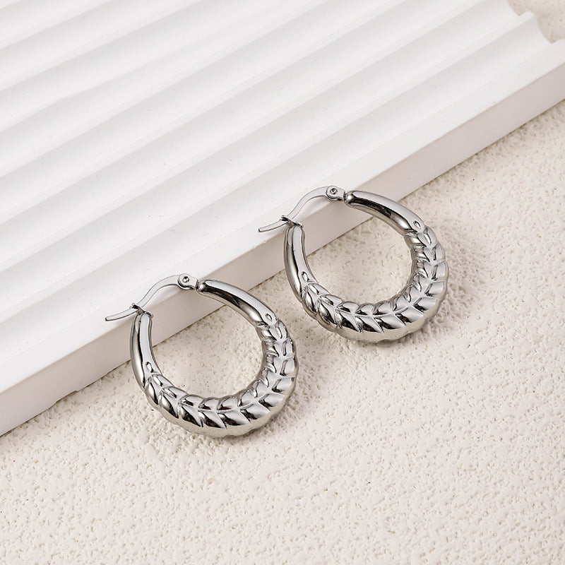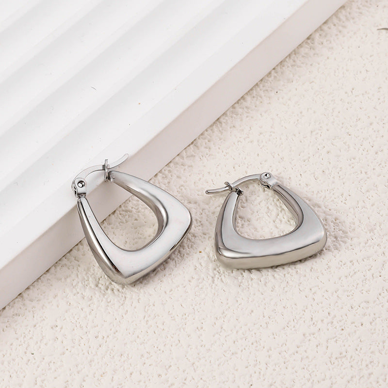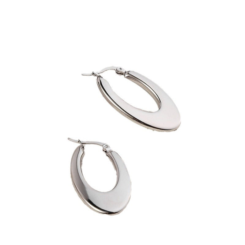 Wholesale High-end Oval Smooth Hollow Non Fading Irregular Decorated Titanium Steel Earrings