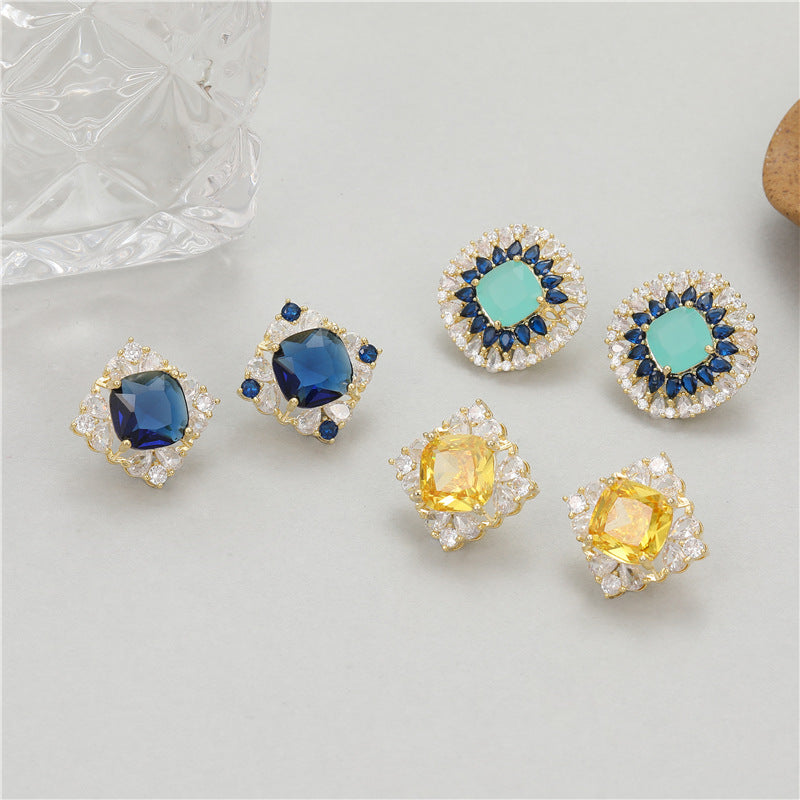 Wholesale Middle Ages Style S925 Silver Needle Earrings Blue Zirconium Stud Earrings
