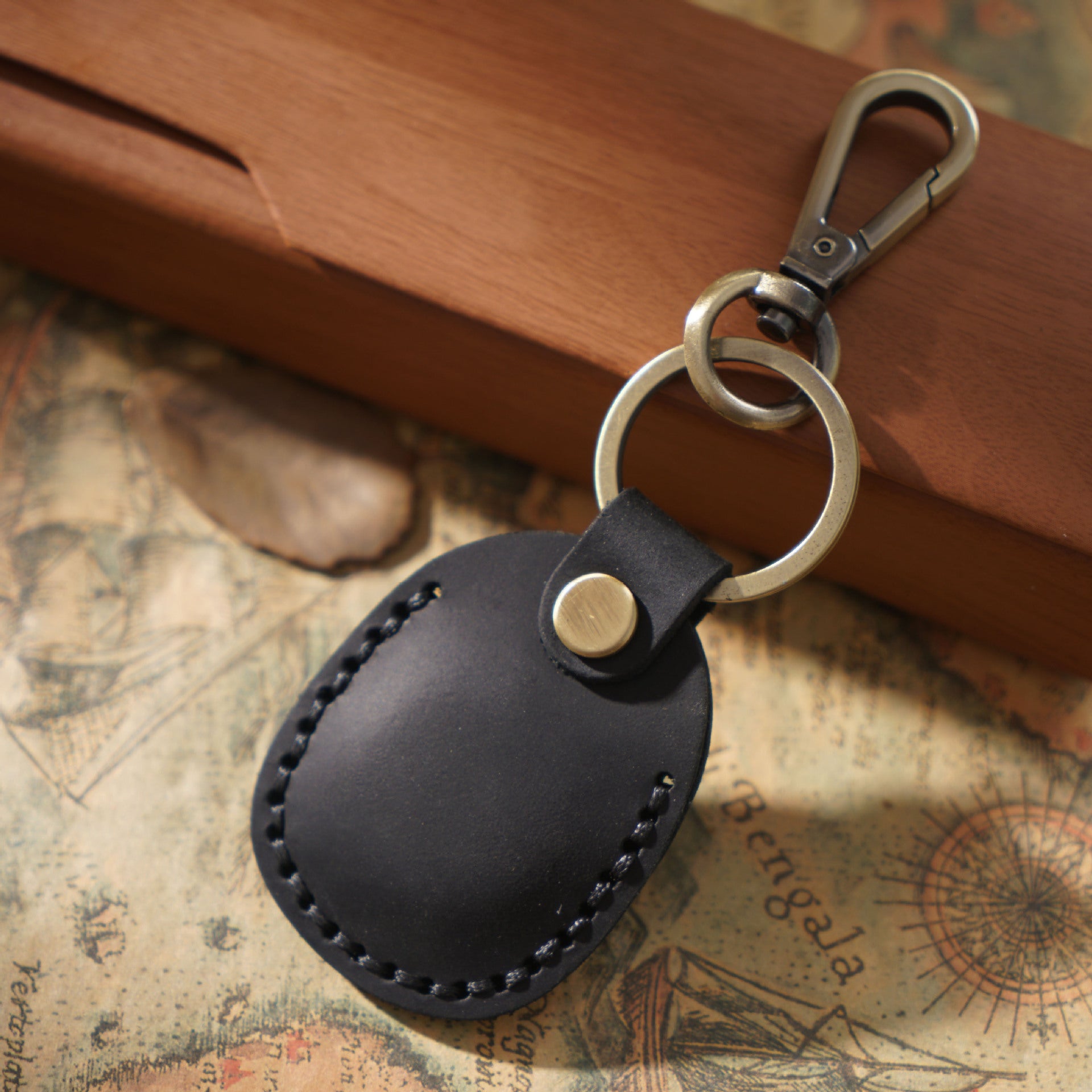 Wholesale Vintage top layer cowhide door hand-sewn leather card holder keychain