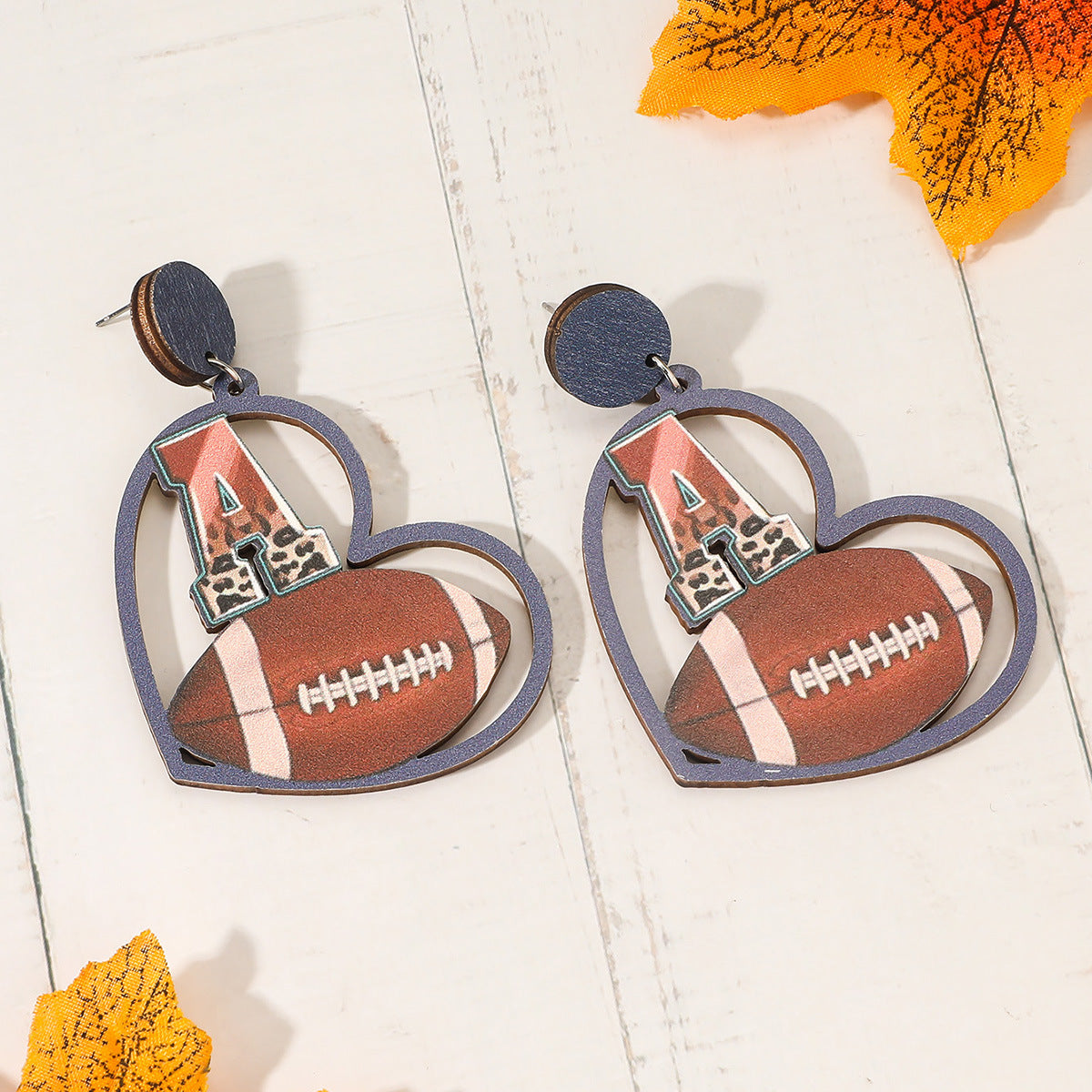 Wholesale Wood Earrings Football Season Trend Heart Earrings