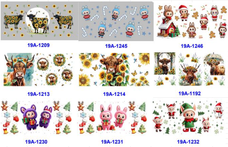 Wholesale 5pcs Christmas Cow 16oz Single-Sided Cup Stickers