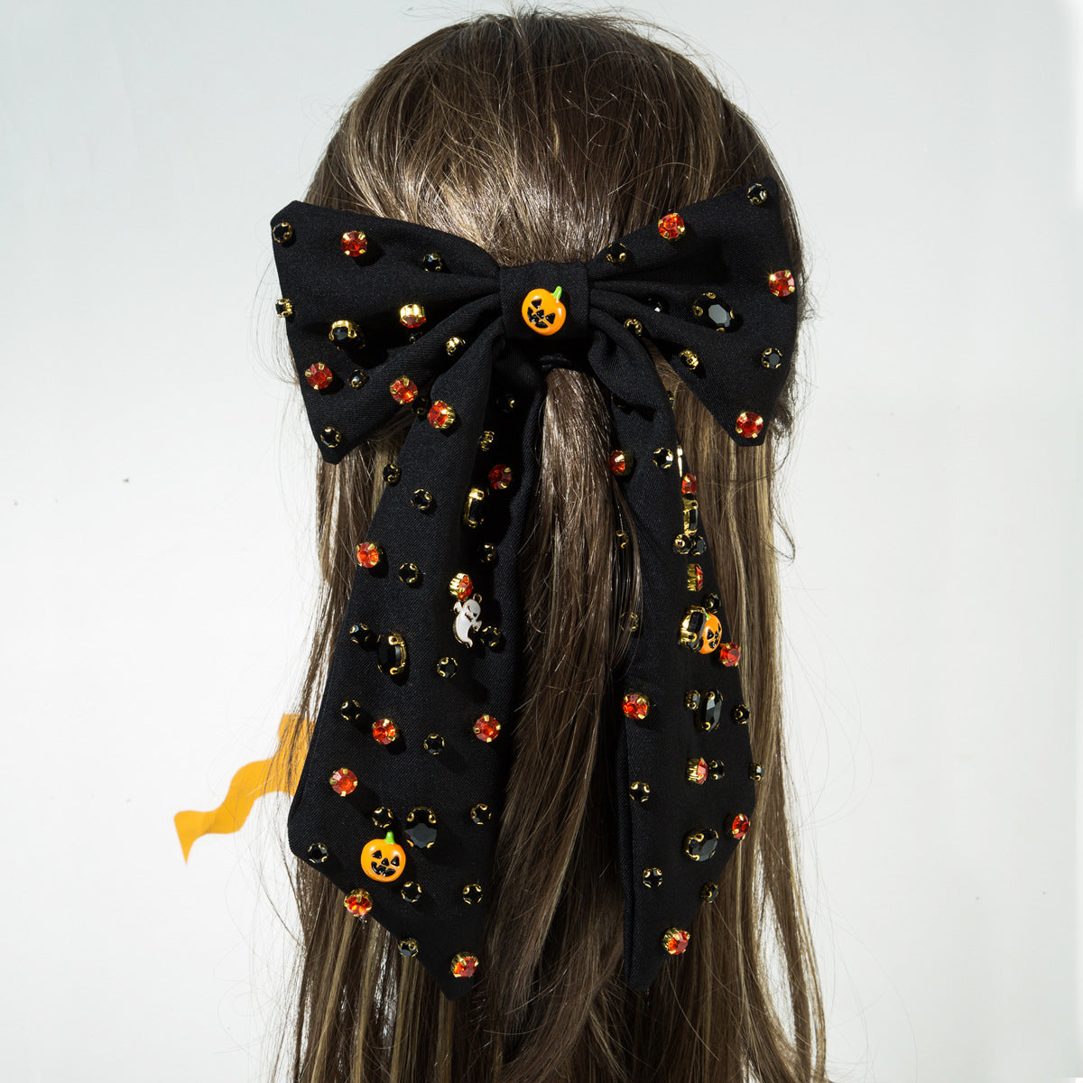 Wholesale Halloween Bow with Diamond Studded Pumpkin Ghost Hairpin