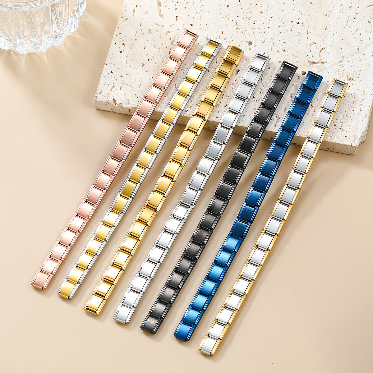 Wholesale Retro Style Zircon Set 18K Gold Plated Titanium Steel Bracelet