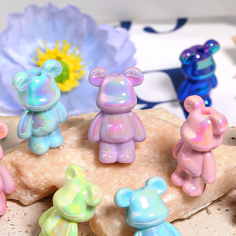 Wholesale 30pcs Luminous Standing Love Bear UV Plating Vertical Hole Acrylic Diy Beads