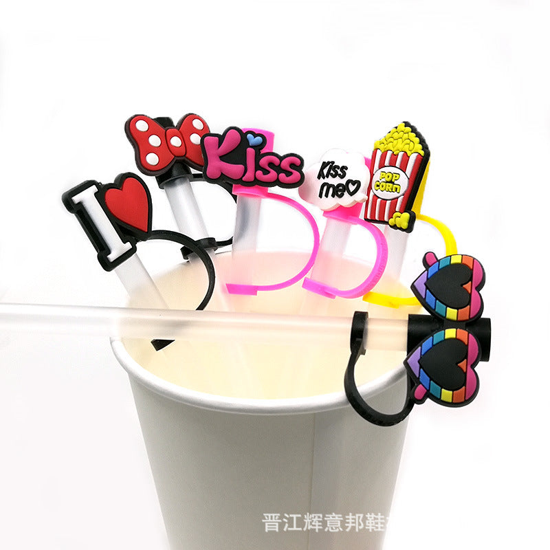 Wholesale 10pcs/pack Cute casual straw cover straw cap cartoon silicone straw dust cap dust plug