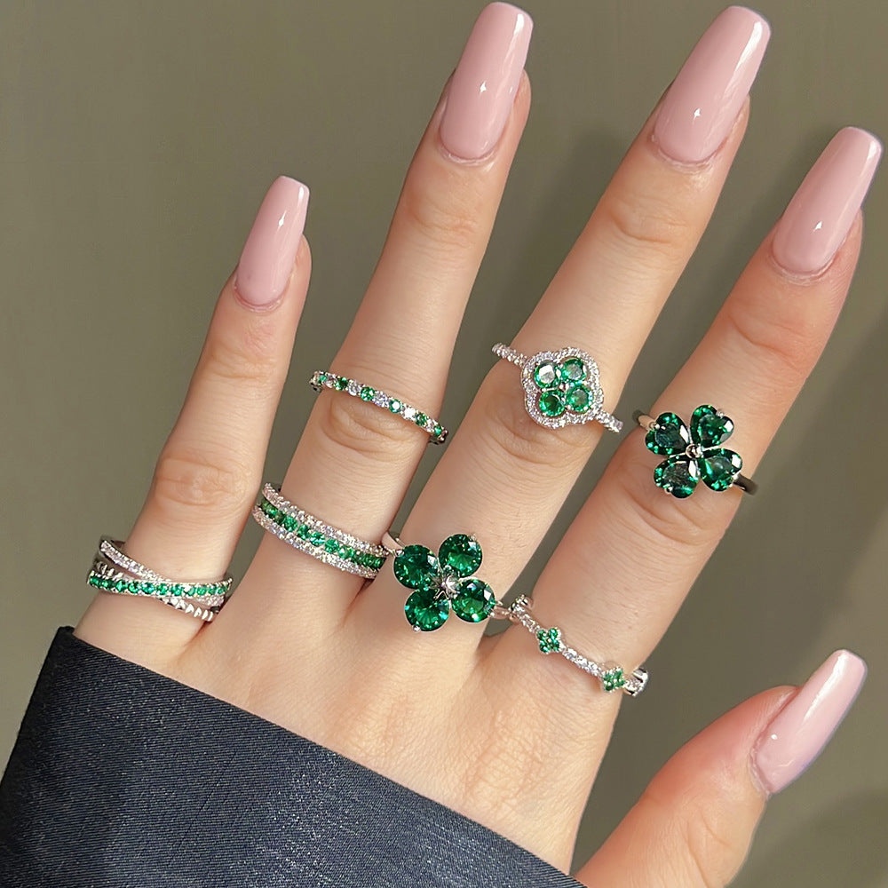 Wholesale S925 Silver Emerald Gemstone Adjustable Ring