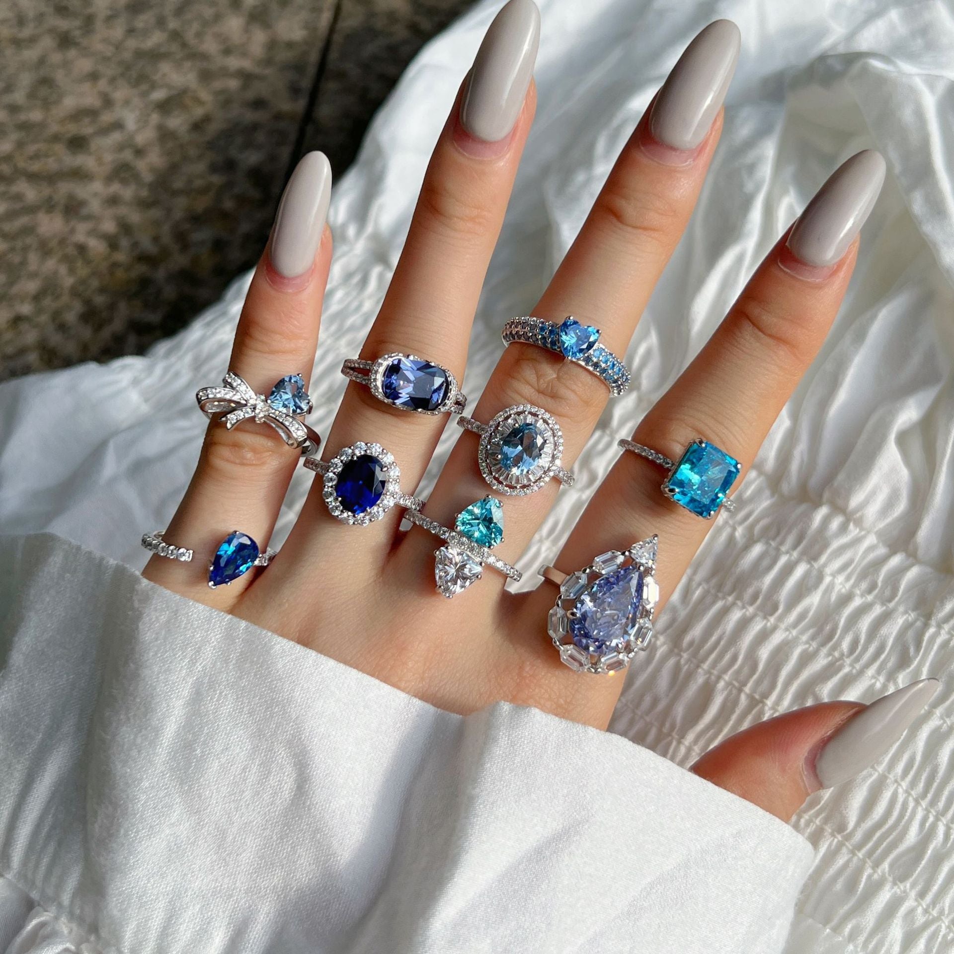 Wholesale S925 Silver Diamond Sapphire Adjustable Ring