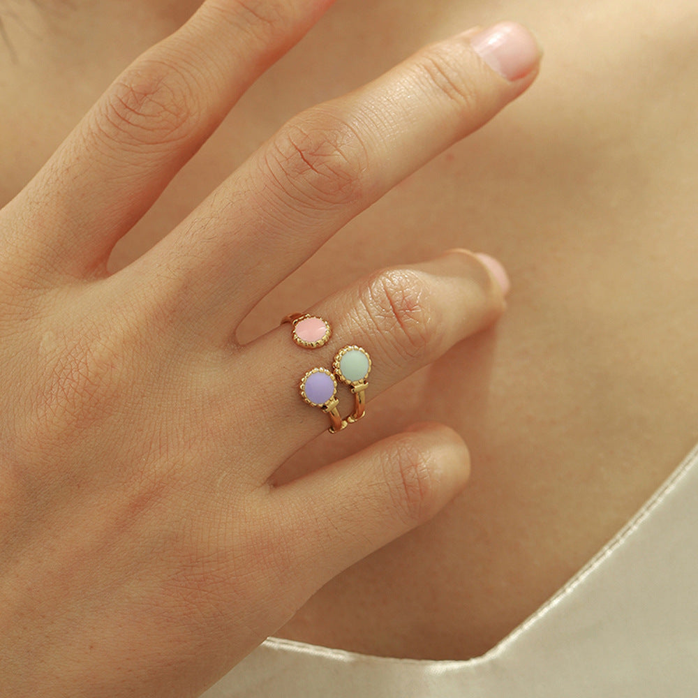 Wholesale Cute Stainless Steel Gold Open Dot Oil Dropping Hand Jewelry Rings