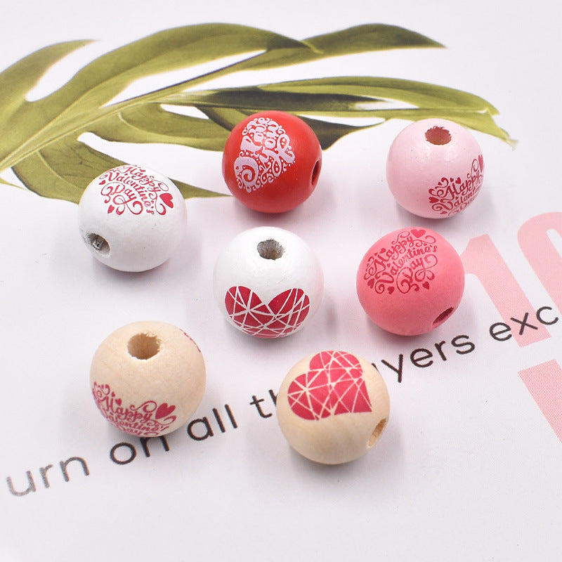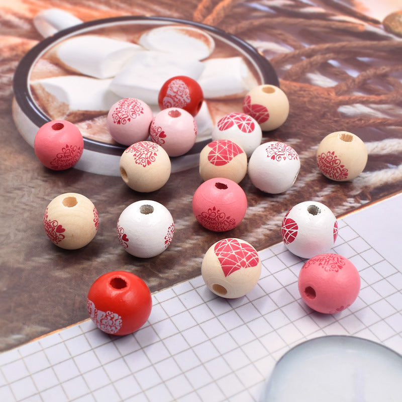 Amor al por mayor cuentas de madera de flores impresas en inglés