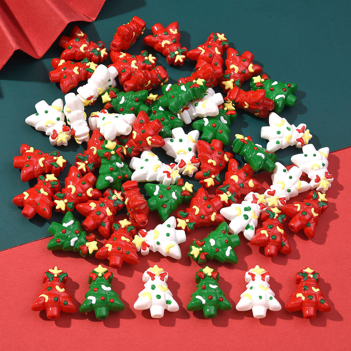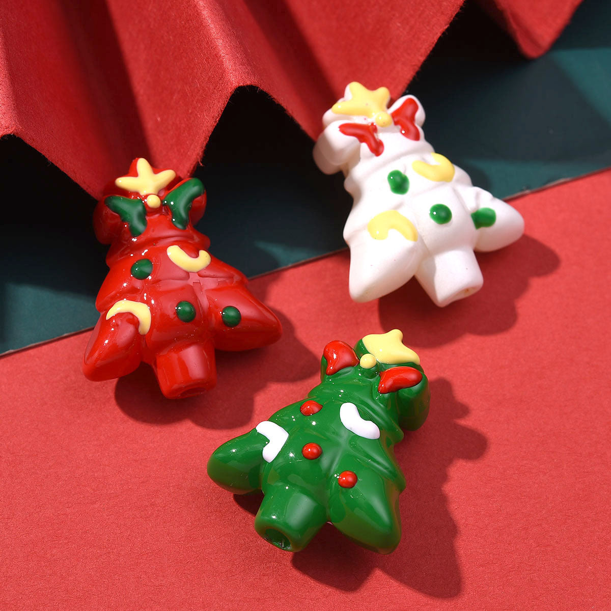 Wholesale 10pcs Double-sided Drip Oil Christmas Tree Acrylic Bead Beads