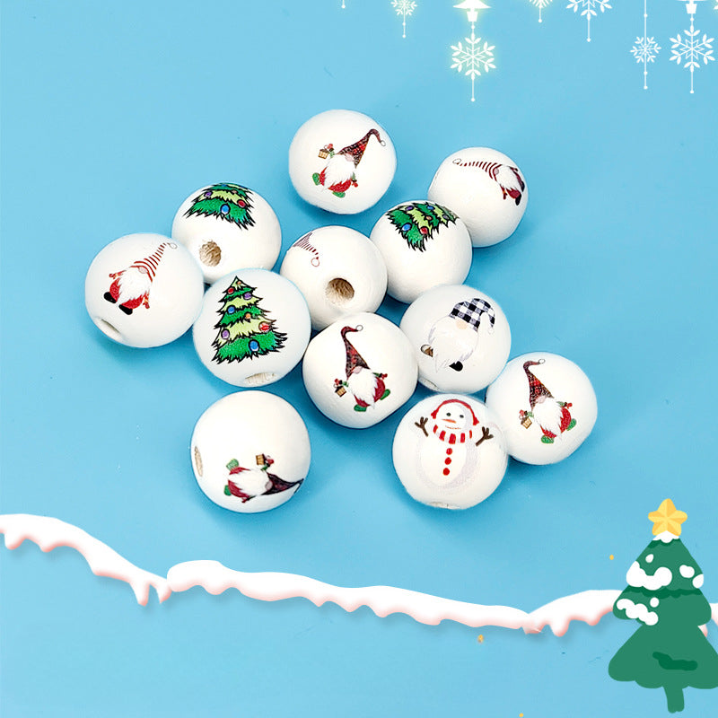 Wholesale 10PCS Christmas Decoration Wooden Beads DIY Children’s Round Beads