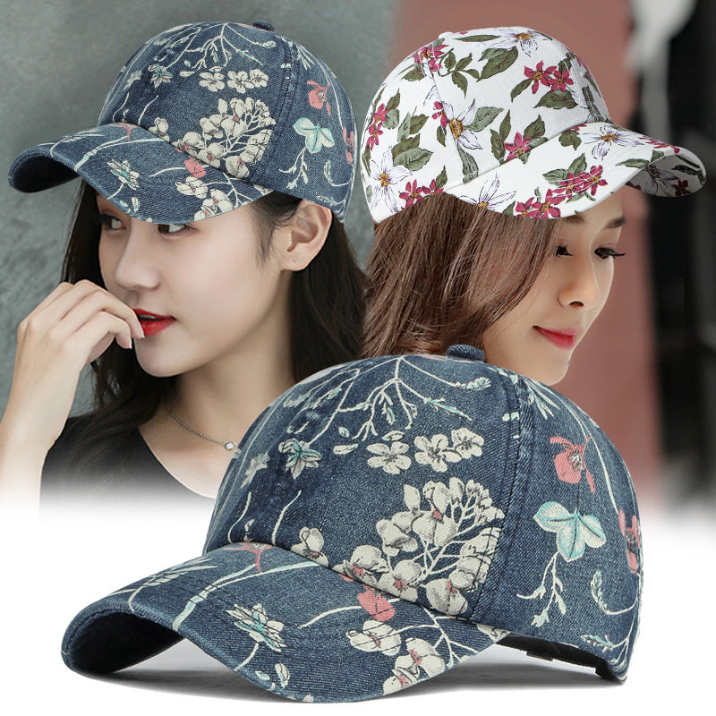 Wholesale Spring and Autumn Ethnic Style Print Washed Denim Outdoor Sunscreen Shade Cap