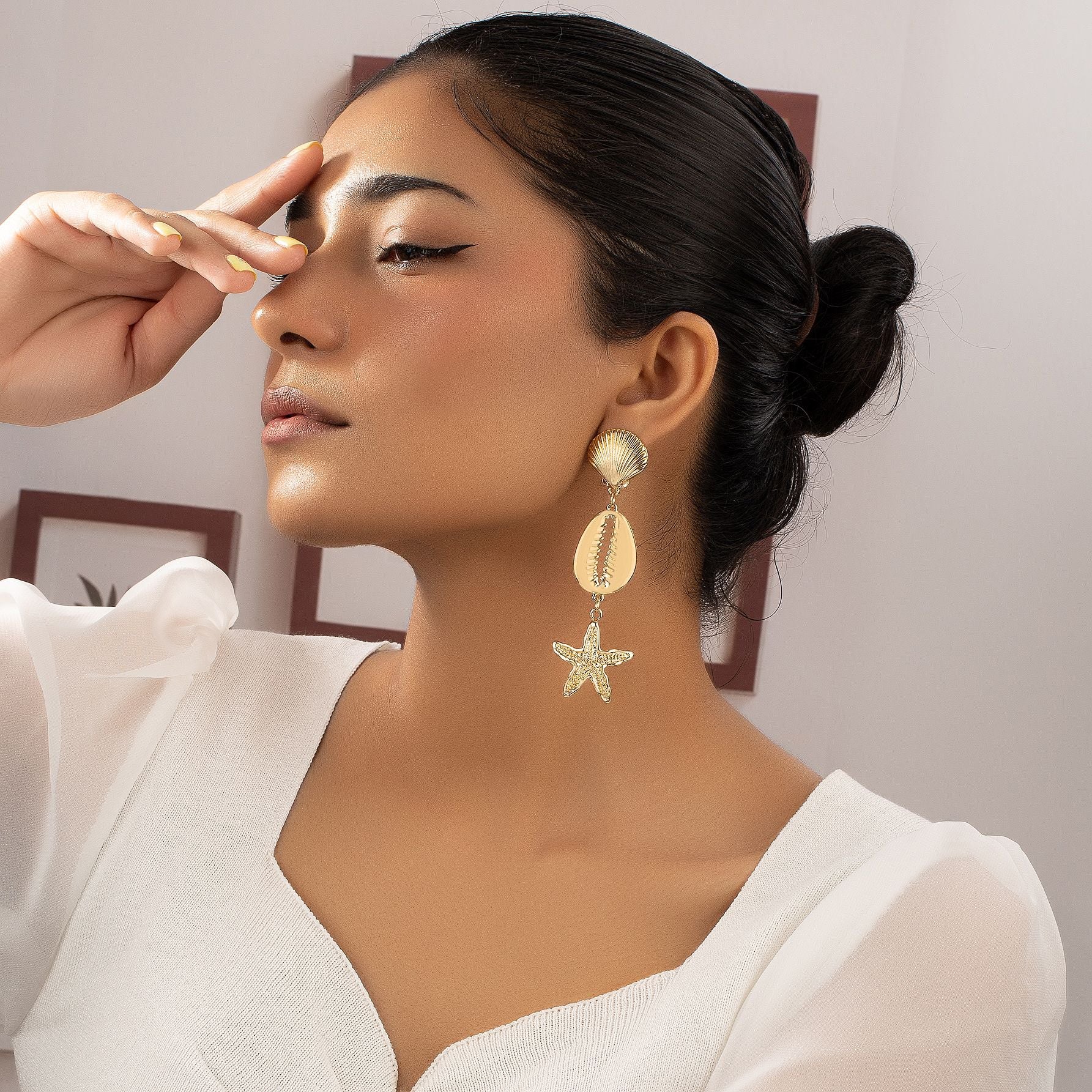 Wholesale Trendy and Versatile Shell Starfish Personality Exaggerated Earrings