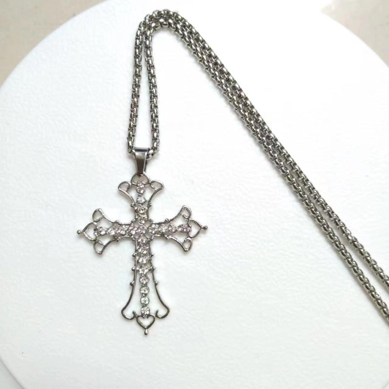 Wholesale Cross Diamond Hollow Sweater Necklace
