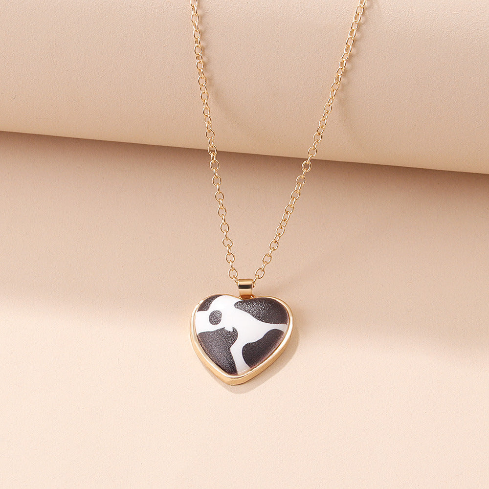 Collares de colgantes de corazón de resina de vaca de tablero de vaca al por mayor