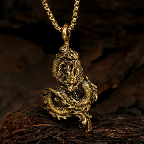 Wholesale retro personality domineering 12 zodiac dragon pendant hip-hop punk men's titanium steel necklace a generation of hair