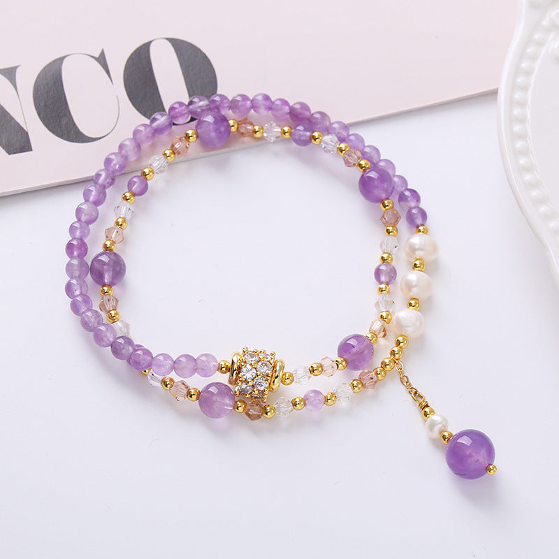 Venta al por mayor Pulsera De Amatista Natural De Doble Círculo