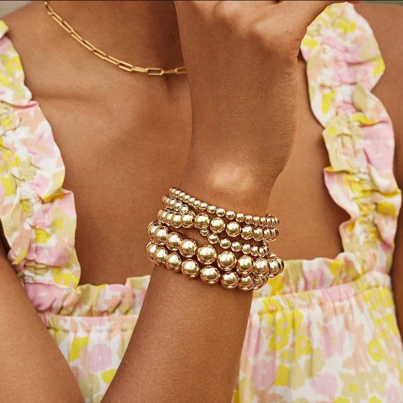 Brazalete de cuentas apilables con múltiples capas de multicapa chapada en oro