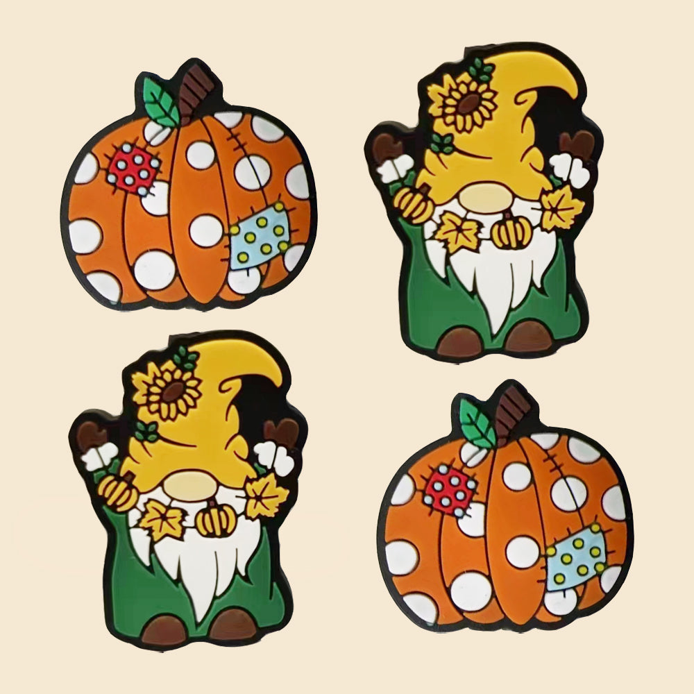 Wholesale 10pcs Cartoon Patch Pumpkin Sunflower Dwarf Old Man Pattern Silicone Beads