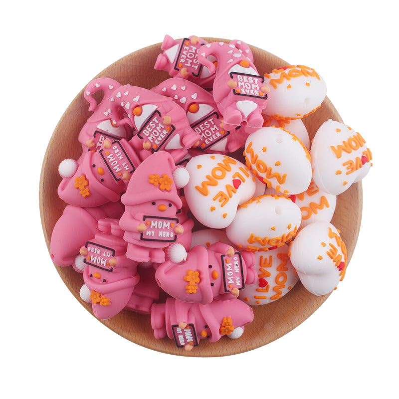 Wholesale 3pcs 3D New Cartoon Silicone Mother's Day Beaded Creative DIY Beaded Pen Bracelet Keychain Accessories