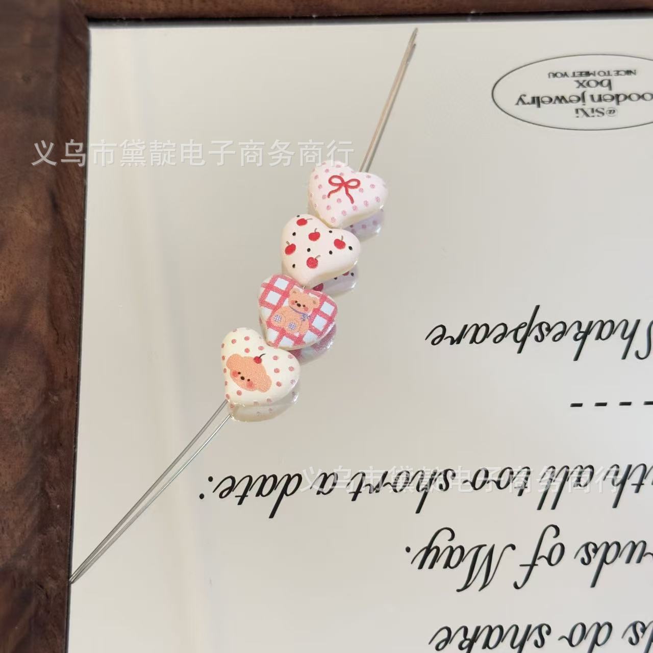 Wholesale 10pcs Relief Plaid Bear Crooked Apple Heart Acrylic Beads