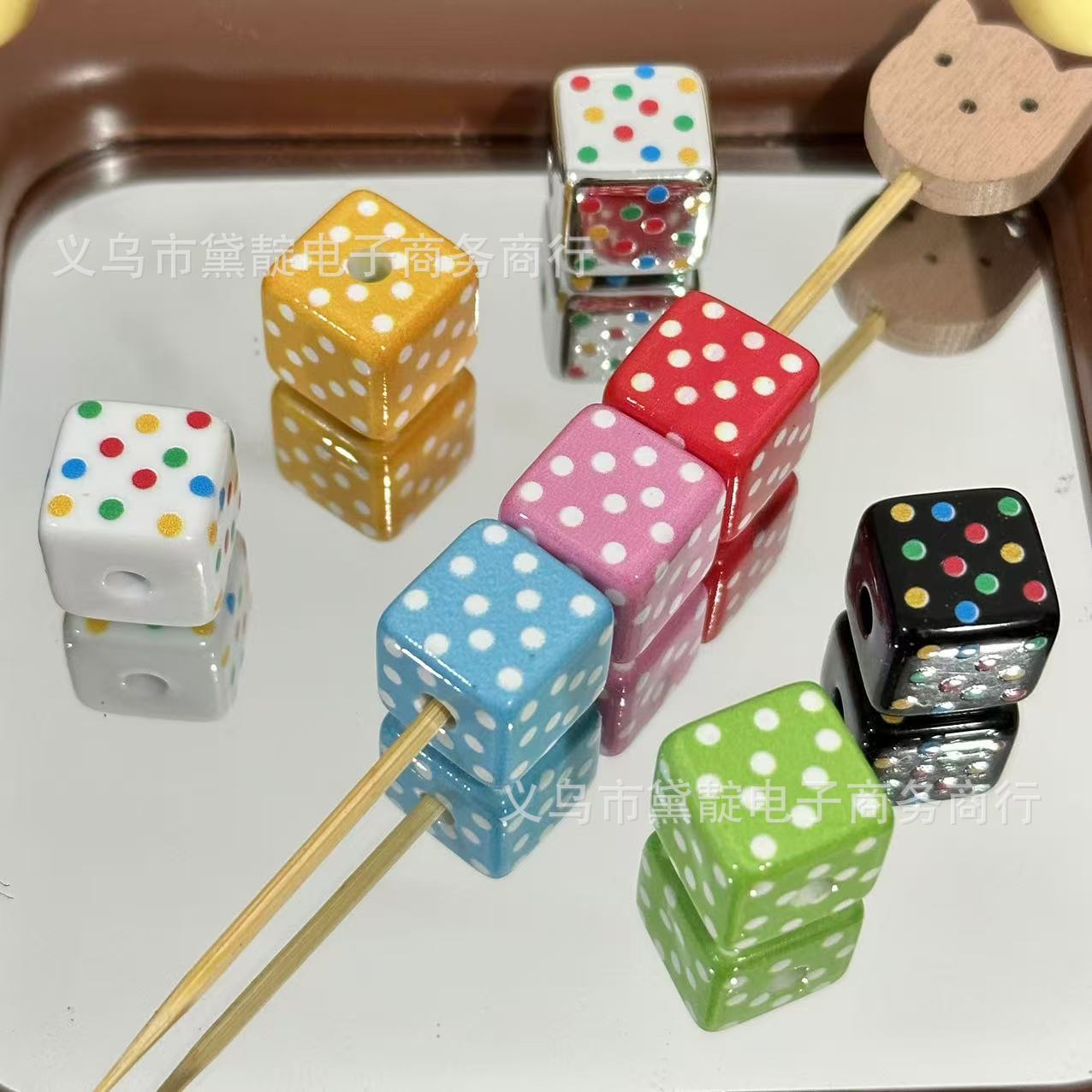 Wholesale 10pcs Color Dot Four-sided Square Acrylic Beads