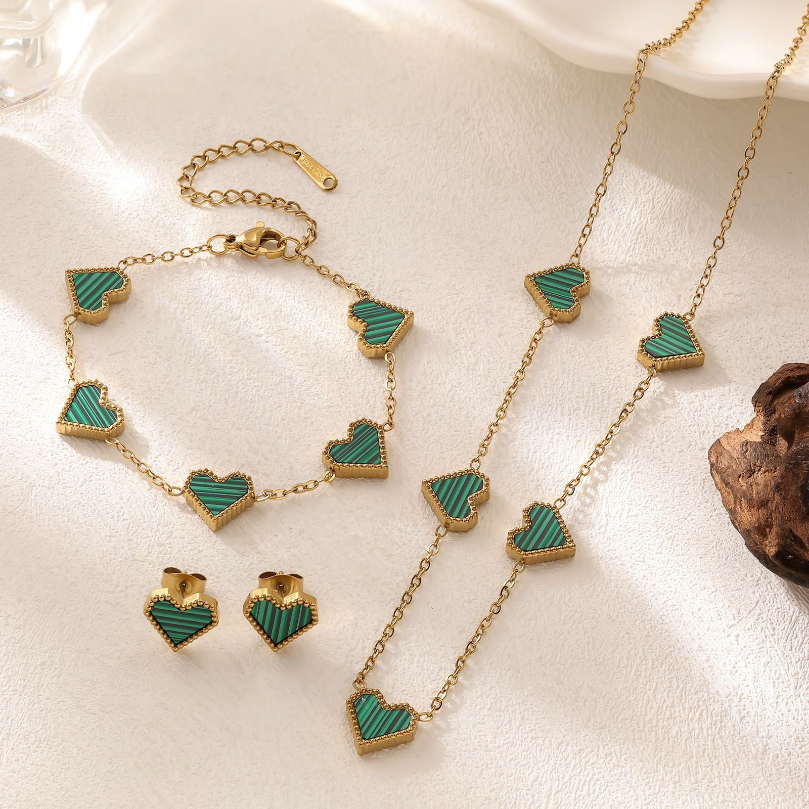Wholesale Stainless Steel Fritillary Five-flower Peach Heart Bracelet Necklace Earring