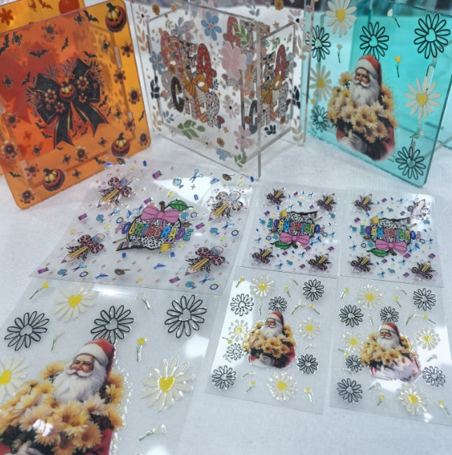 Includes 3 random solid/gradient acrylic pen holders for DIY creation With two sizes of stickers are available for the pen holder: 6 stickers for the front (large size: 9.3cm*9.3cm) + 6 stickers for the side (small size: 4.2*6.2cm).