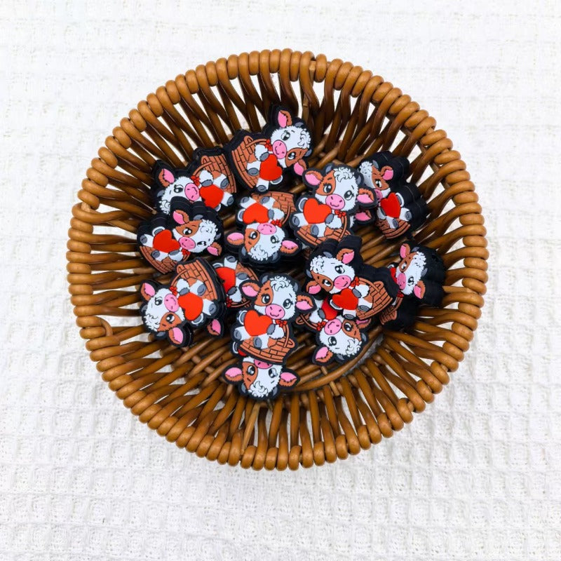 Wholesale 10pcs Cute Cow Silicone DIY Beads