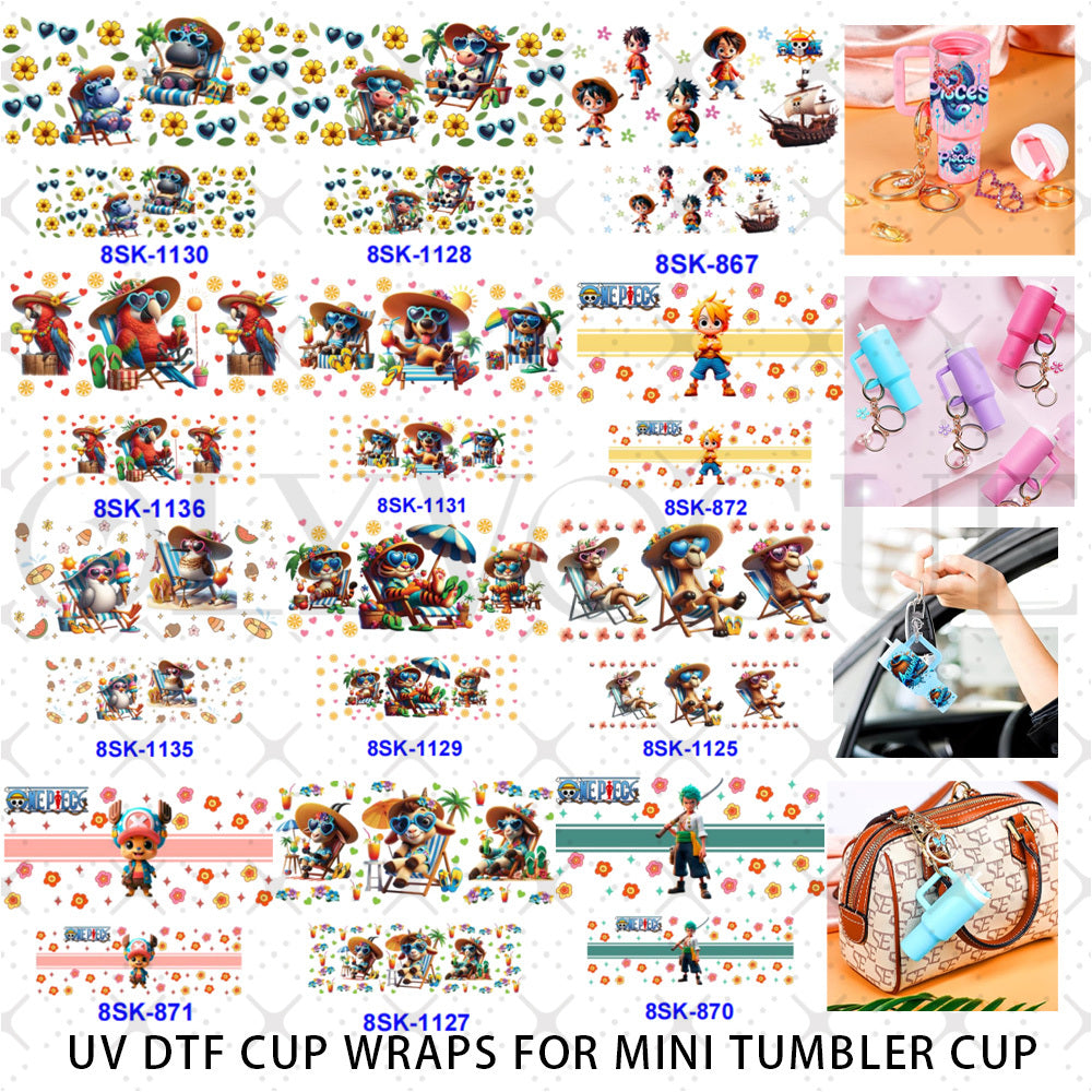 Wholesale 2/4/8 Pcs Summer Vacation Animal Cartoon Boy Girl UV DTF Wraps Mini Tumbler Cup Keychain Lipstick Holders OLY Exclusive