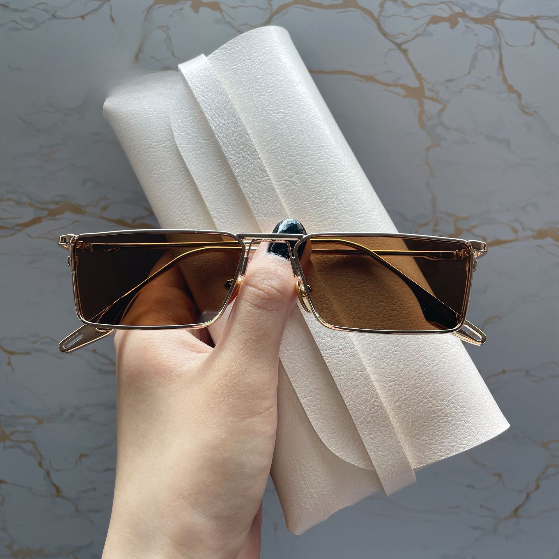 Gafas de sol de PC de marco cuadrado de metal polarizado al por mayor