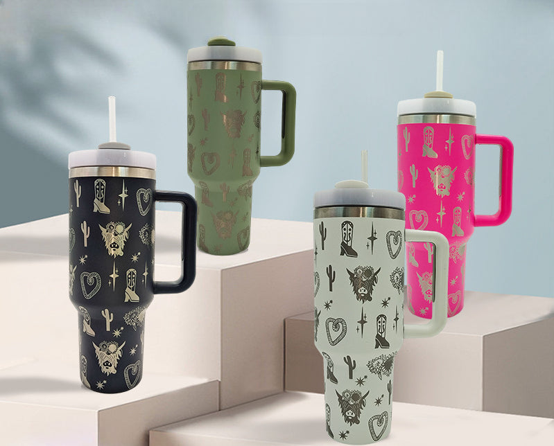 Wholesale Tumbler Ice Bullies Cup Western Style Laser West Highland Cow Thermos Cup Straw Cup 40OZ Car Cup Ice Cup