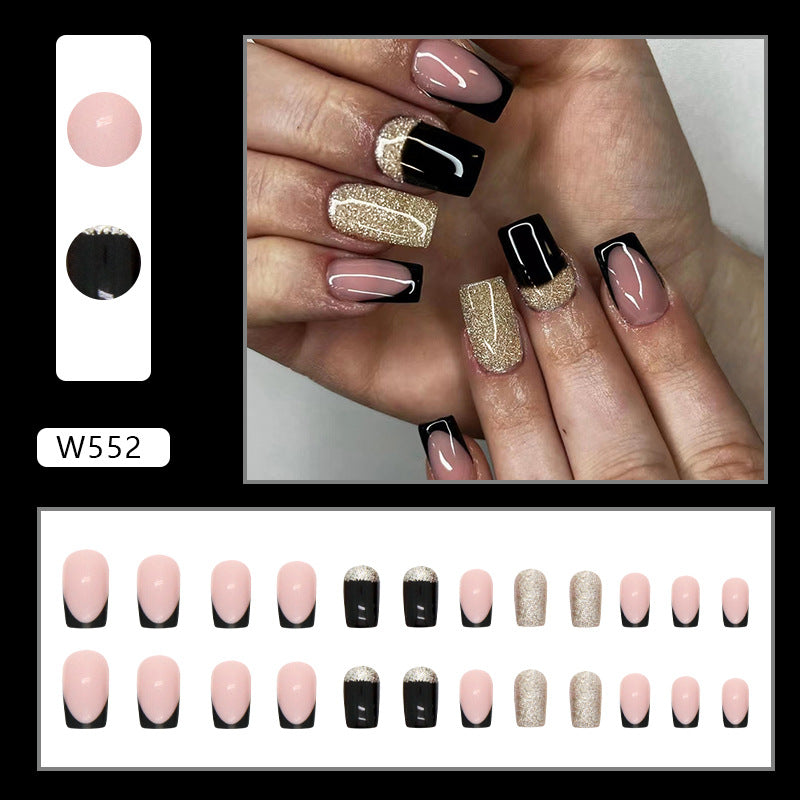 Pegatinas al por mayor de longitud media europea brote polvo negro negro de uñas francesas