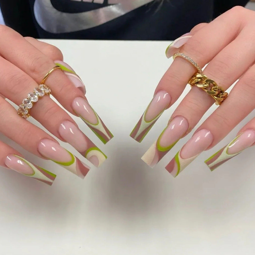 Mezcla de plástico multicolor al por mayor y realce de uñas ultra largo a rayas a juego