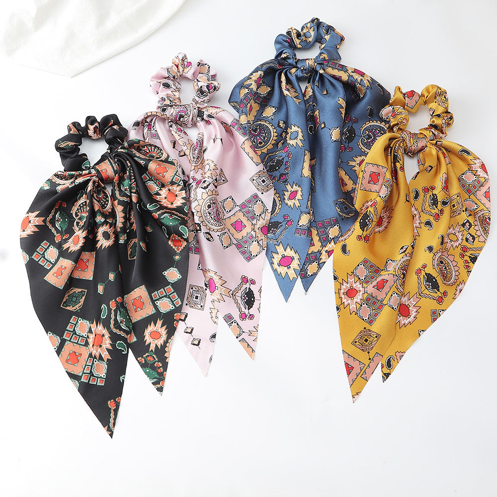 Venta al por mayor Triangle Ribbon Hair Ties Fabric Hair Scrunchies