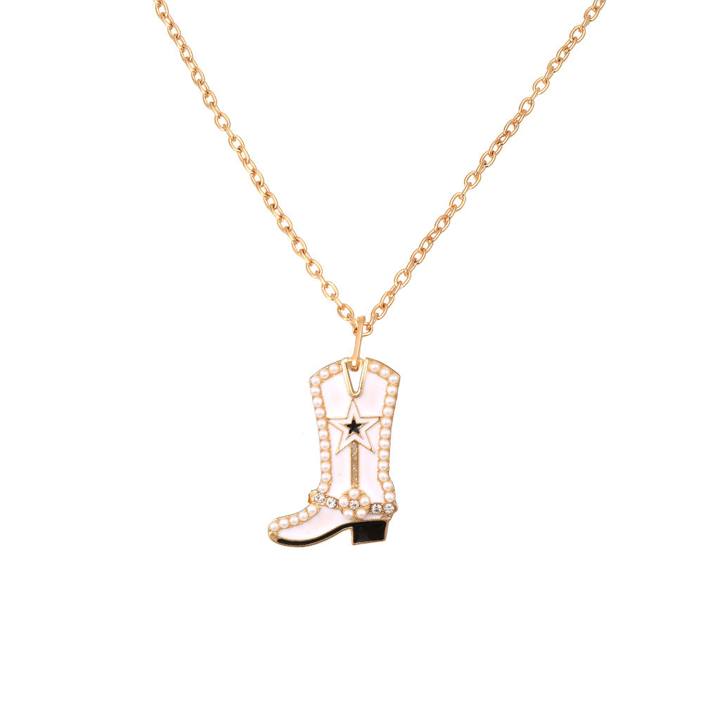 Collar de botas de diamantes de dibujos animados con colgante de perlas de aleación al por mayor