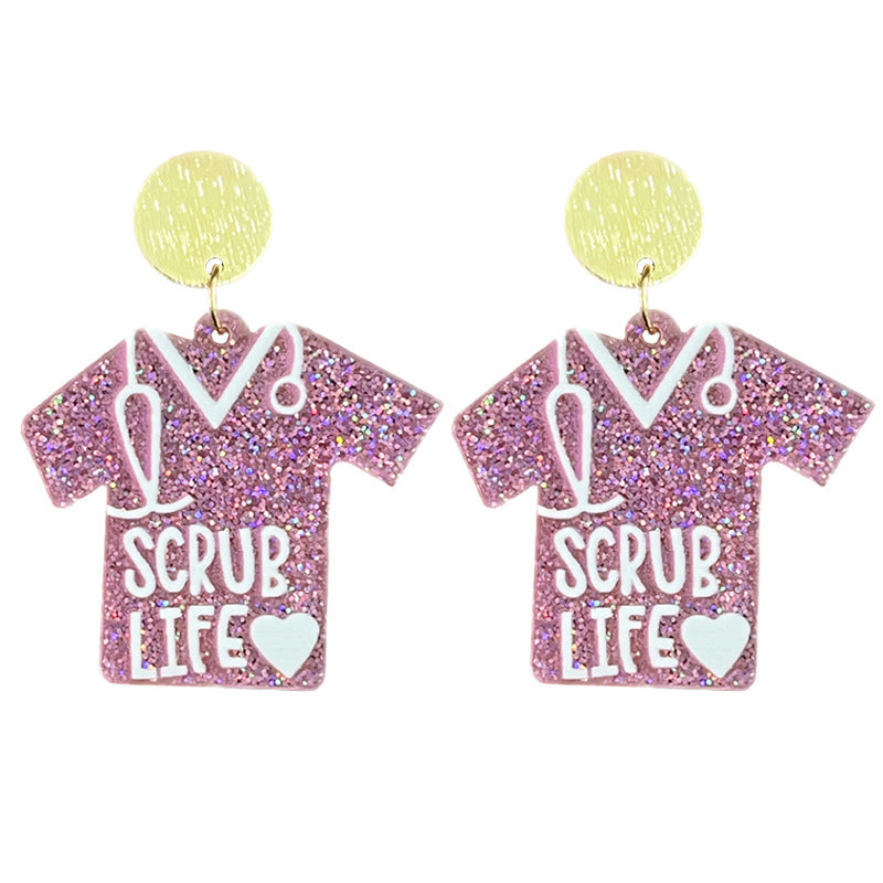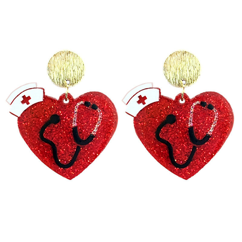 Wholesale Doctor Nurses Day Acrylic Pink Heart Nurses Clothing Stethoscope Fun Earrings