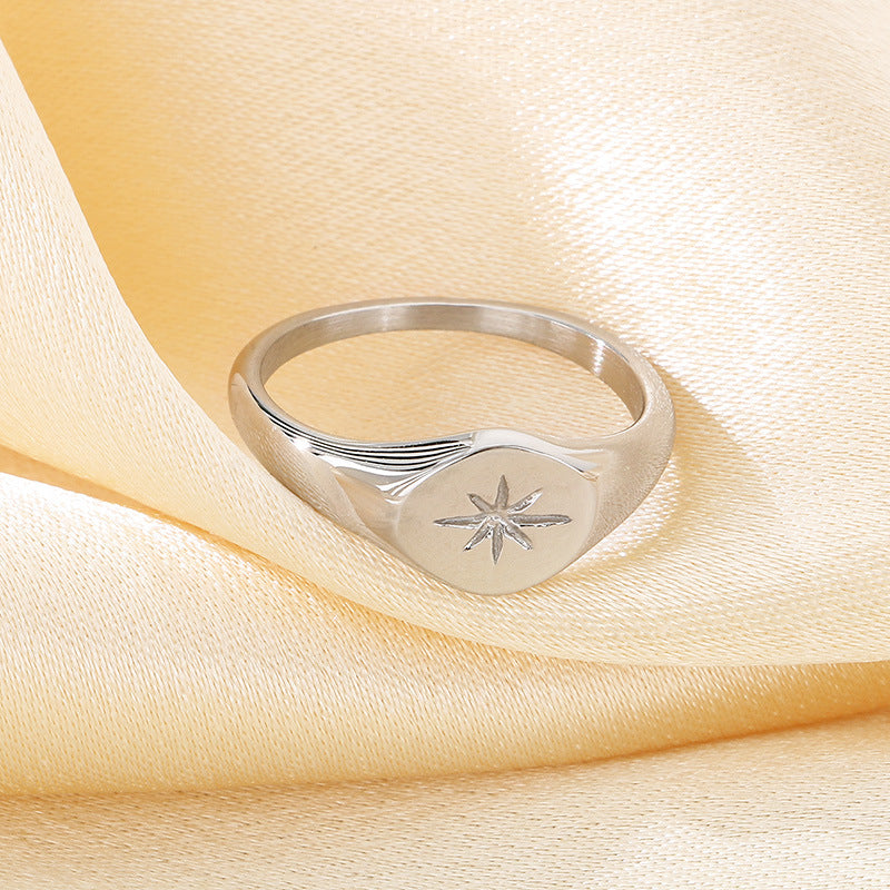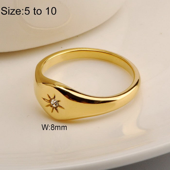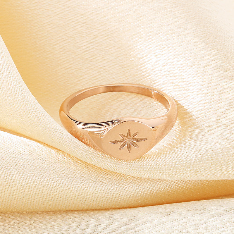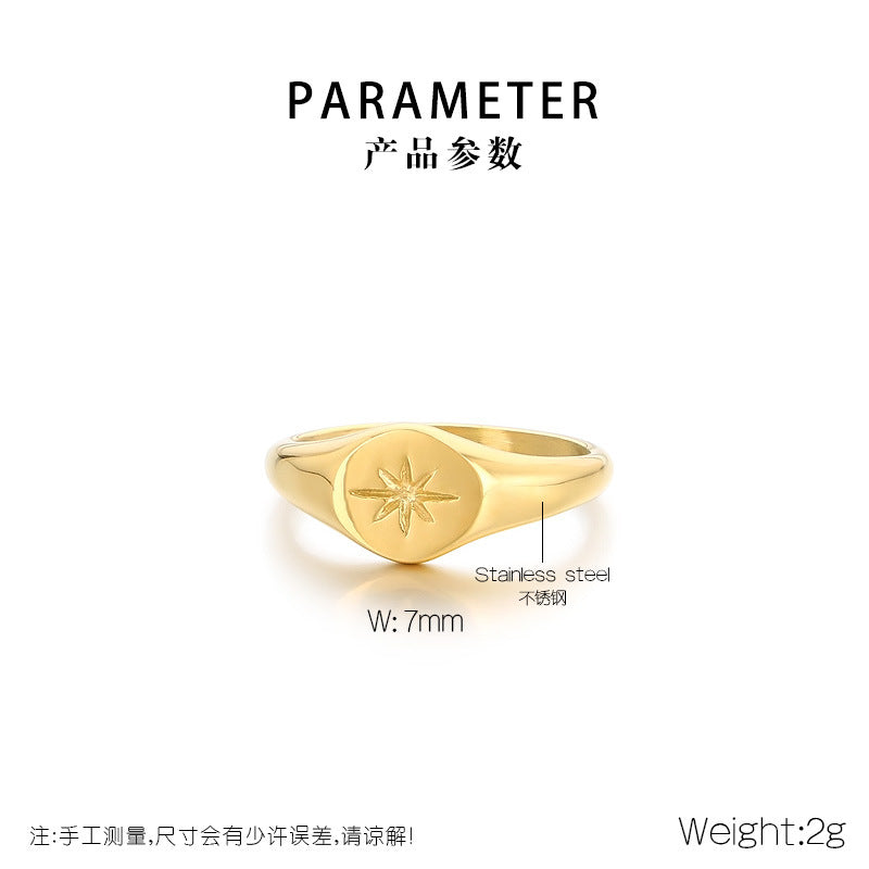 Wholesale Cold Style Oval Polished Diamond Eight-pointed Star Stainless Steel 18K Gold-plated Rings