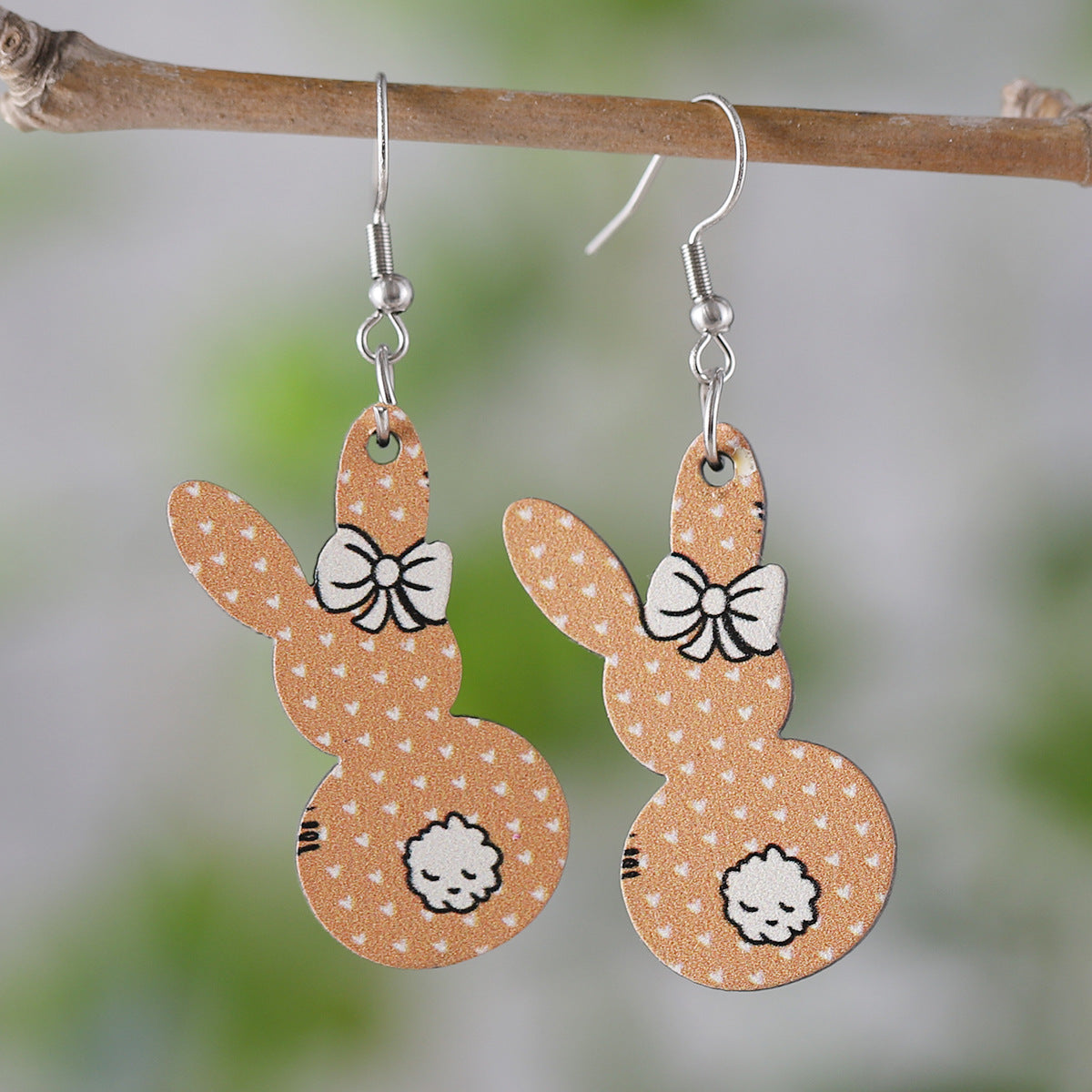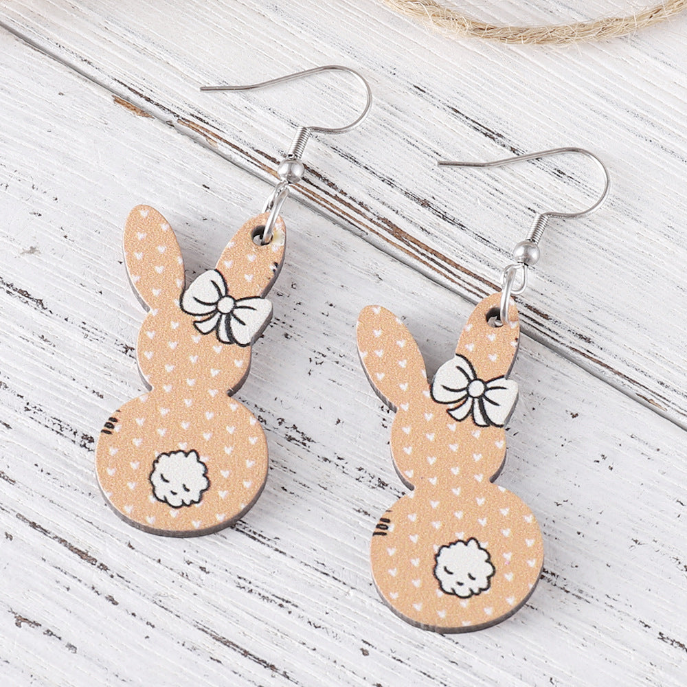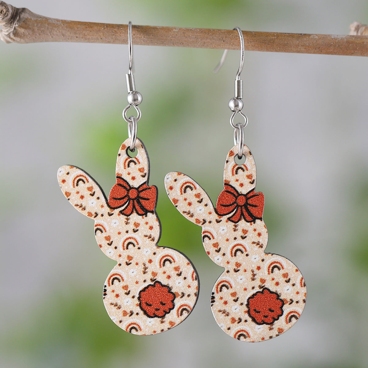 Wholesale Easter Cute Flower Bow Rainbow Rabbit Pendant Wooden Double-sided Earrings Gift